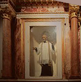 Statue in glass-front niche
