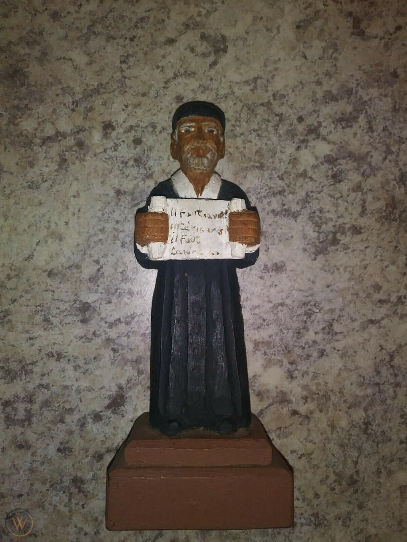 Scroll mostly illegible; wood carved