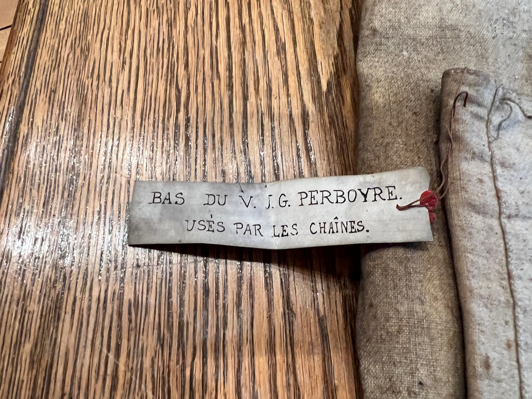 Pants of Venerable JG Perboyre, damaged by the chains; in Vincentian museum, Paris