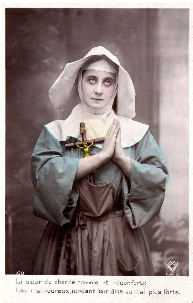 Text: The Sister of charity gives consolation and comfort. The wicked abandon their soul to a stronger evil.