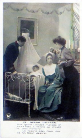 Text: Sent as an attendant hastily to the bedside of the little dying child. Fate wanted her to be Sr. Jeanne.
