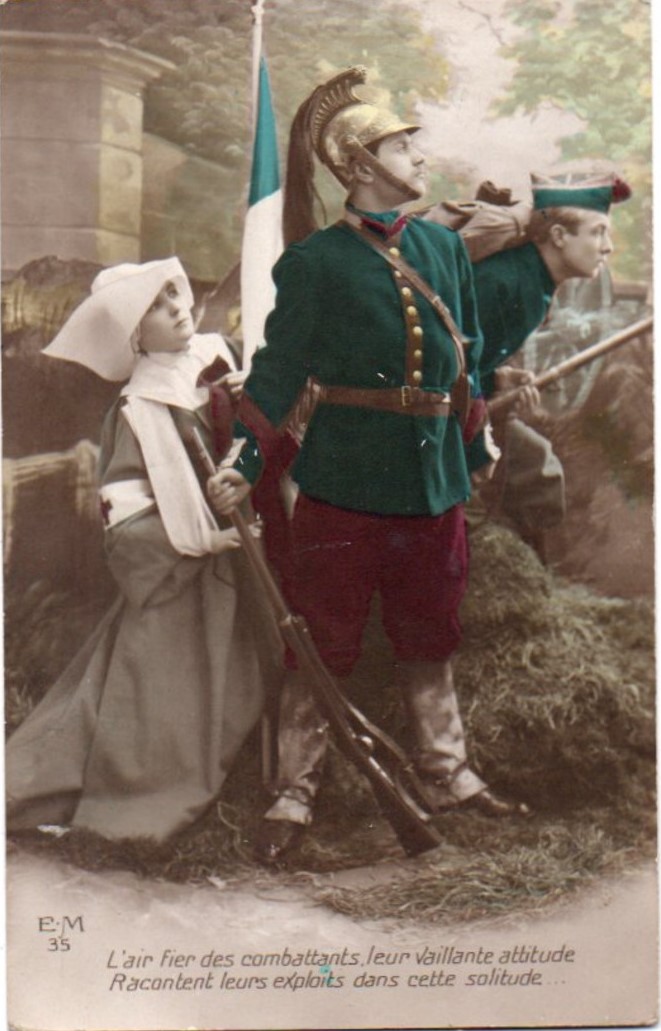 Text: The proud bearing of the fighters, their brave attitude tell of their exploits in this solitude (Rhyming couplet)