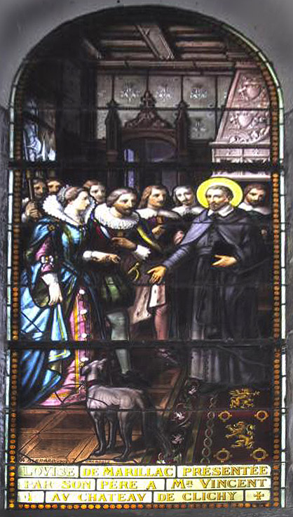 Father of Louise de Marillac presents her to Vincent de Paul at chateau of Clichy, owned by family relatives, Hennequin family; possible account of their meeting