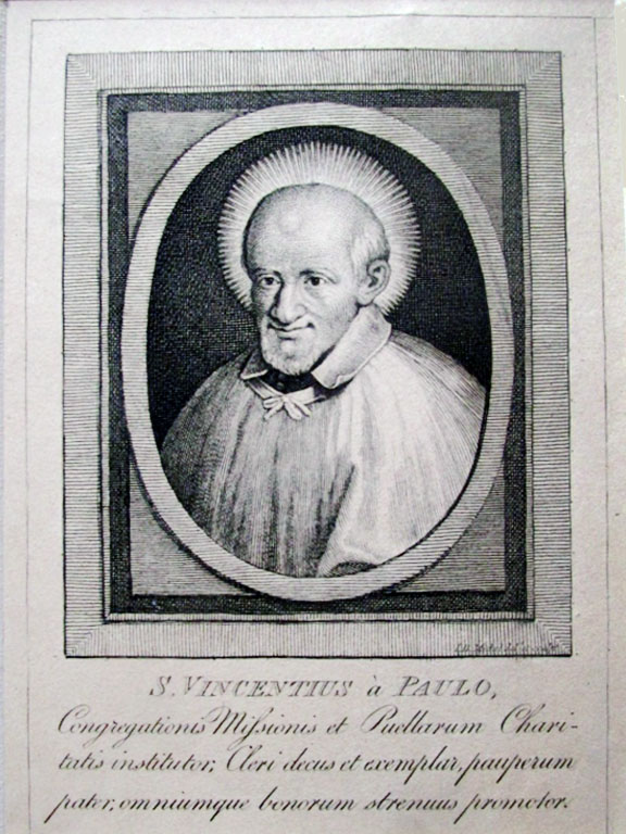 Text: SVdP, founder of the CM and DC; adornment and example of the clergy, father of the poor, and strenuous promoter of all good works