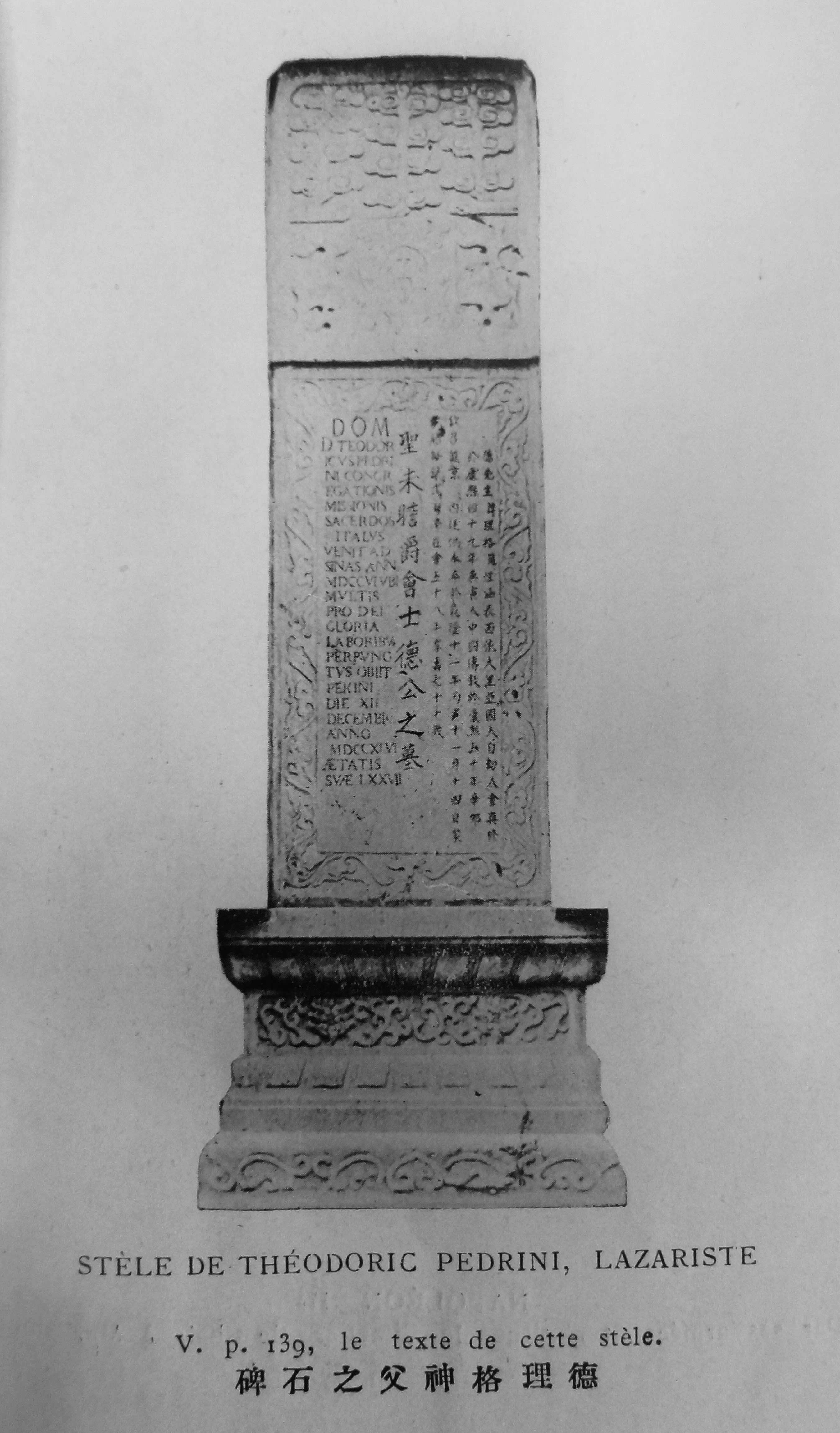 Text: Entered as a priest in CM in Italy; to China in 1706; labored greatly for the glory of God; died Beijing, 12 Dec. 1746, age 77.