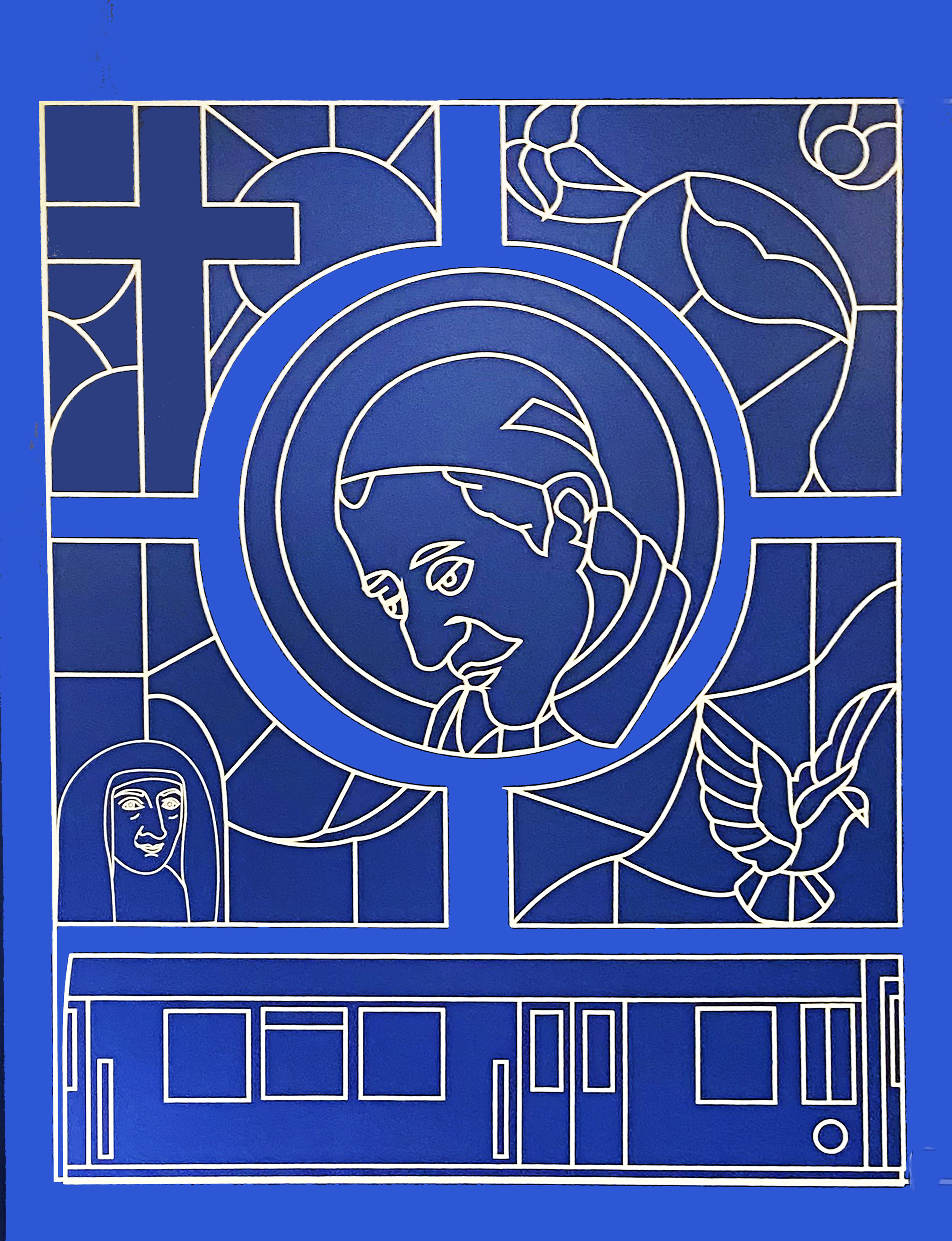Louise de Marillac, lower left; subway car, below