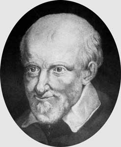 Drawing or painting, detail of Vincent de Paul portrait, cassock, bare headed; original at Vincentian house, Berceau de St. Vincent de Paul, by Labory; said to be drawn from life