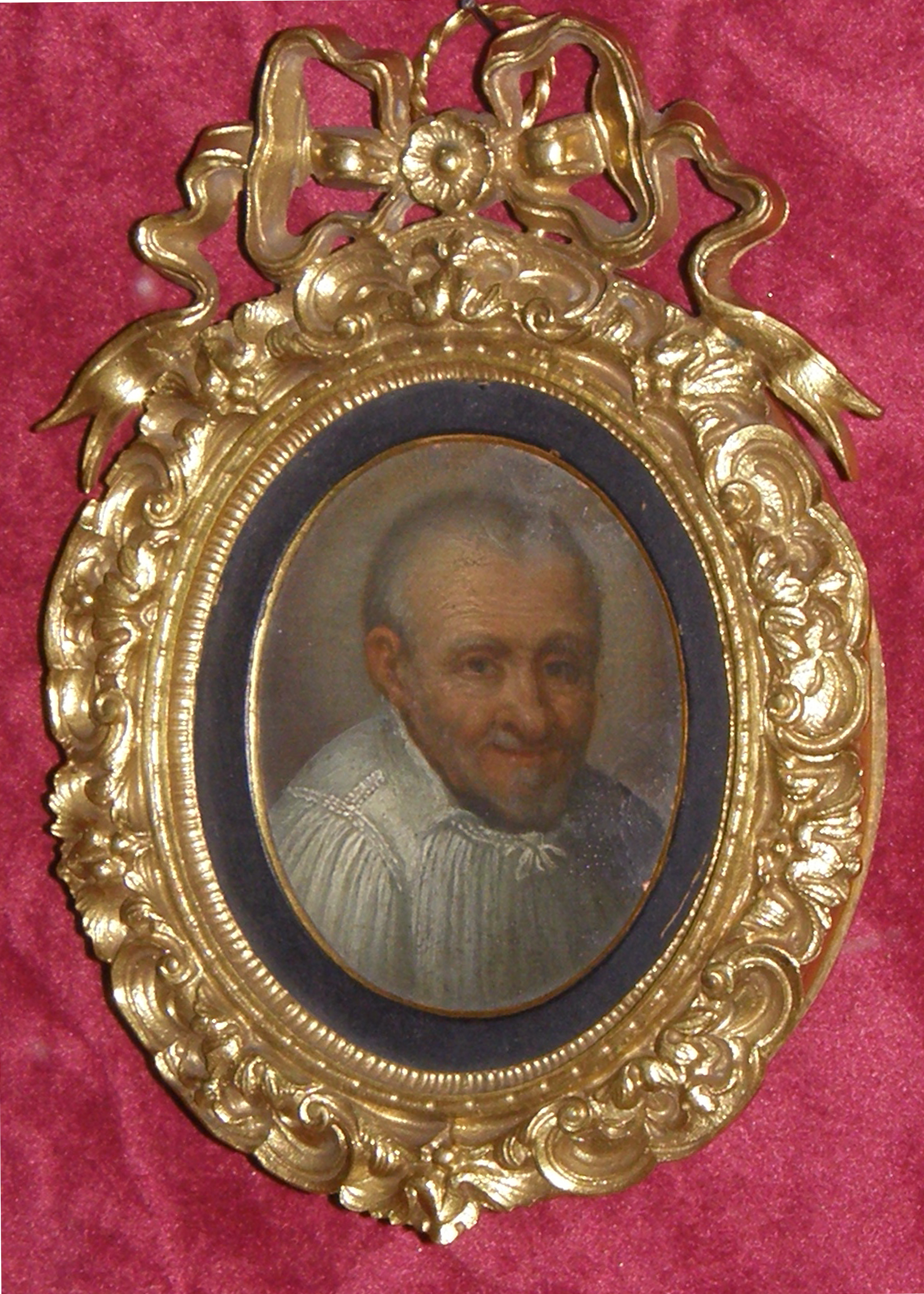Retouching by artist on head; Miniature on copper, probably contemporary with the saint