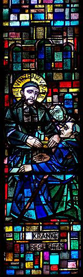 Vincent de Paul and two sick men; original in Herz-Jesu church, Weiden; internet image