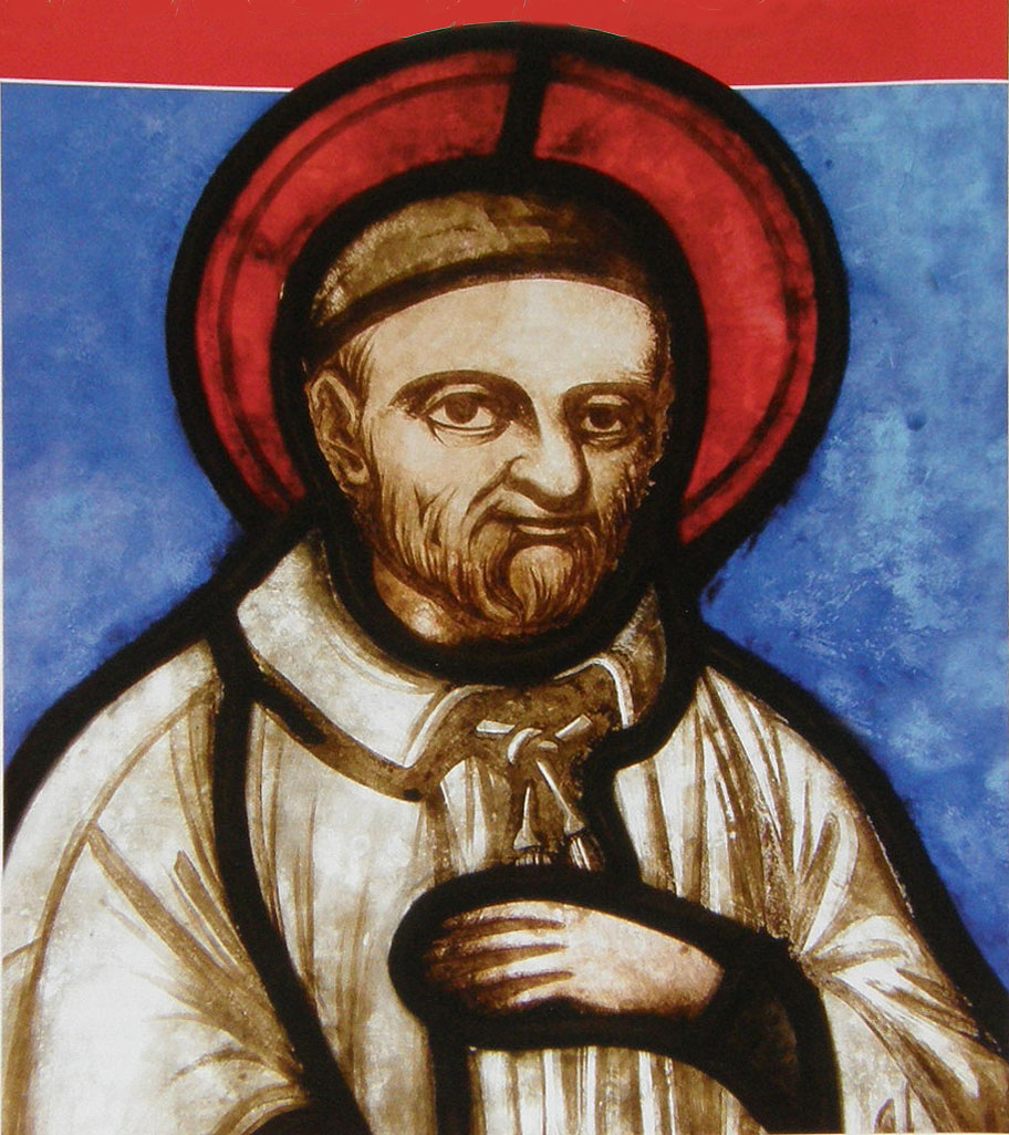 Vincent de Paul in surplice; red halo; fragment of a larger window; location of original unknown (probably Germany)