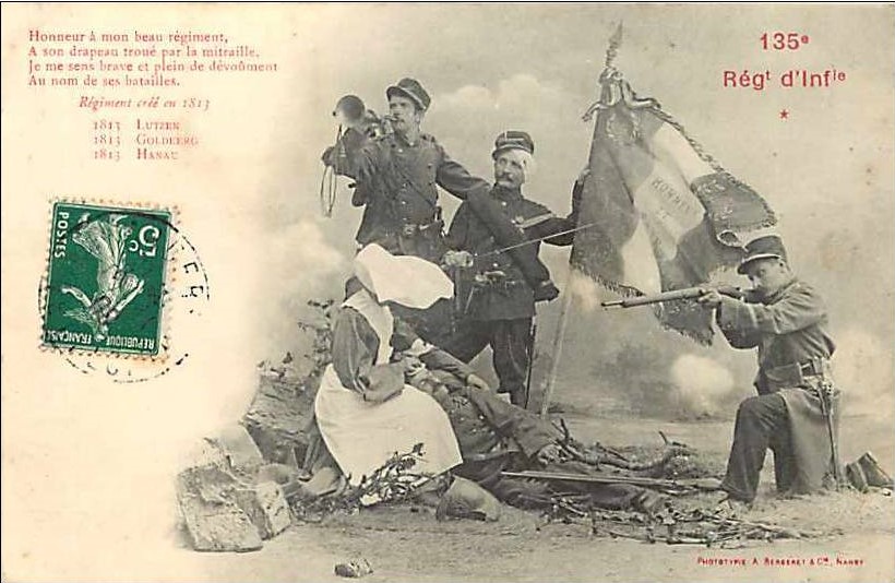 Text: Honor to my beautiful regiment, to its flag riddled with shots; I feel brave and full of devotion in the name of its battles. Regiment created in 1813