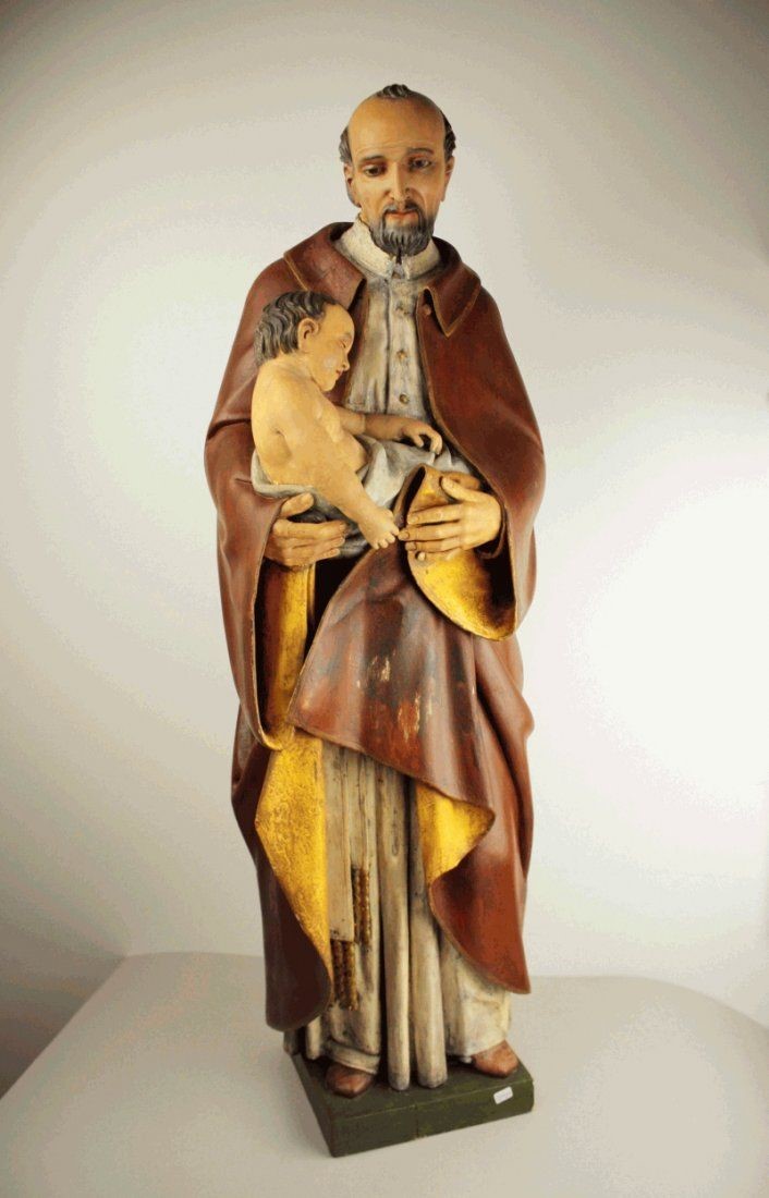 Carved and stained wood; partial gilding