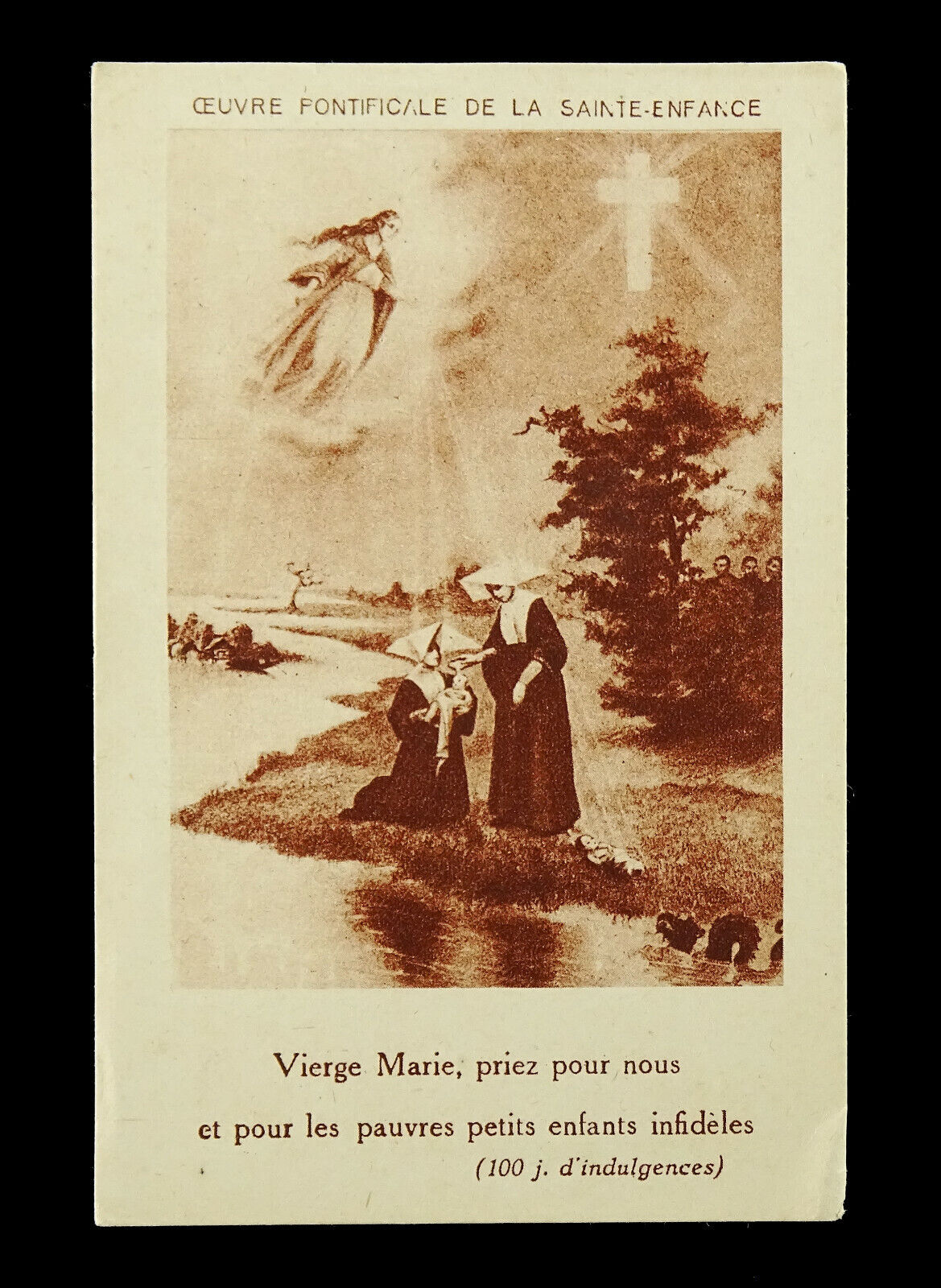 Text: Virgin Mary, pray for us and for the pour little pagan children