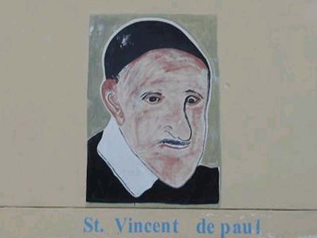 Vincent de Paul mural, with moustache