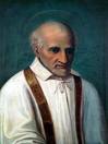 Painting; Vincent de Paul, surplice, dark stole; halo; original in Realschule Vinzenz von Paul, Kloster Indersdorf; internet image