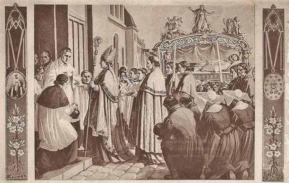 Entering the chapel; body lying opposite to actual position