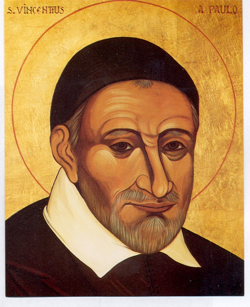 Icon, Vincent de Paul head, name in Latin above; written by Sr. Marie-Paul, of Benedictines of Mount of Olives, Jerusalem; original in collection of John Rybolt, CM