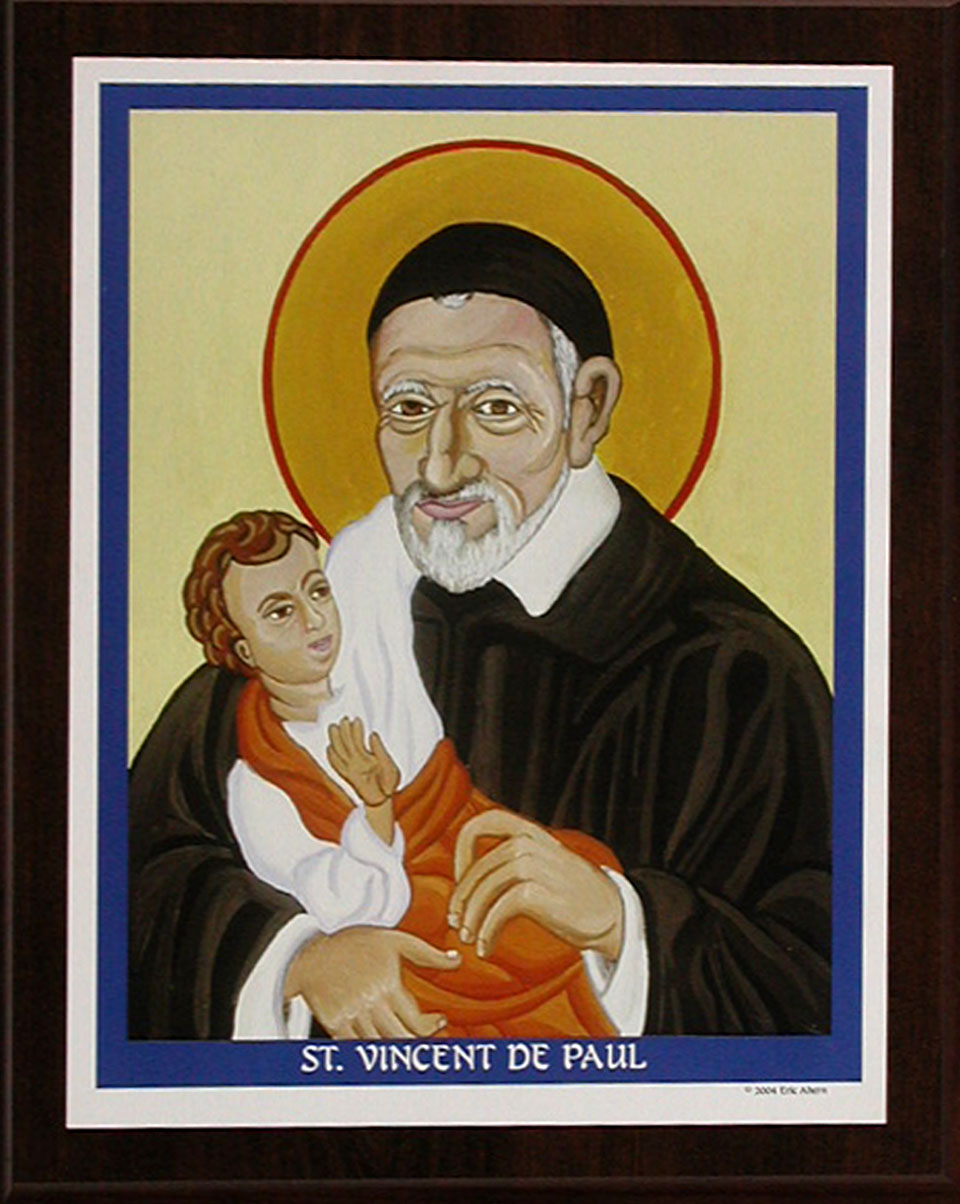 Icon, Vincent de Paul with child in his arms; original design prepared in Krakow; artist: Eric Ahern, 2004