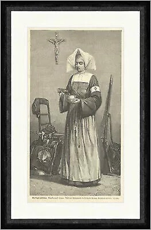 Sister preparing medicine for a soldier; data not given
