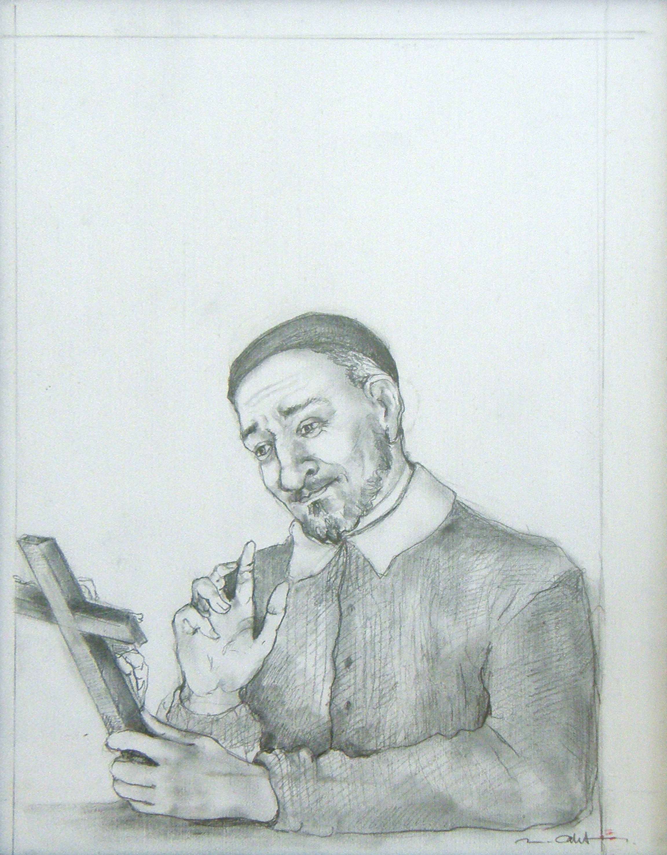 Vincent de Paul contemplating crucifix, preliminary drawing