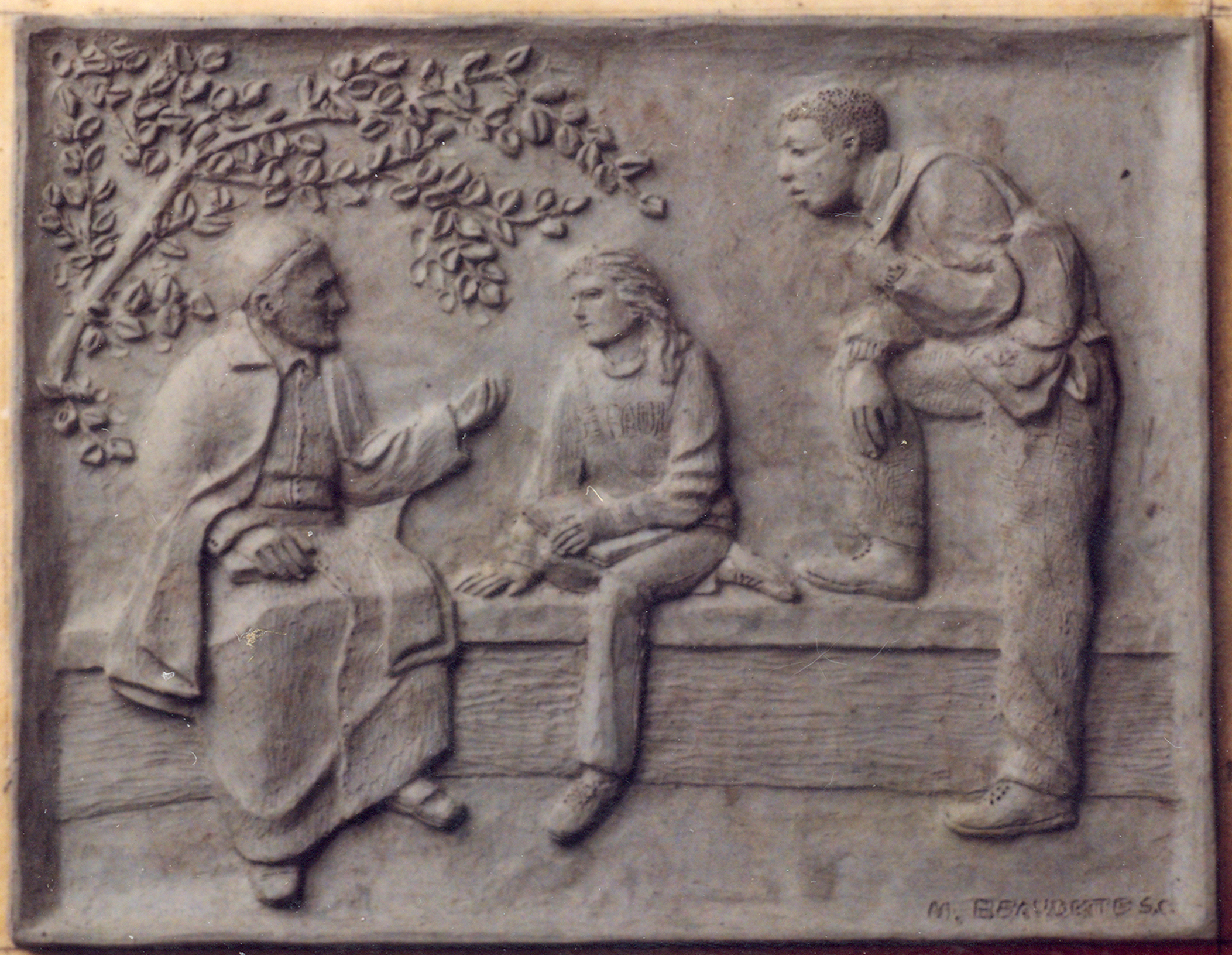 Preliminary concept, Vincent de Paul with two students; by Sr. Margaret Beaudette, SC
