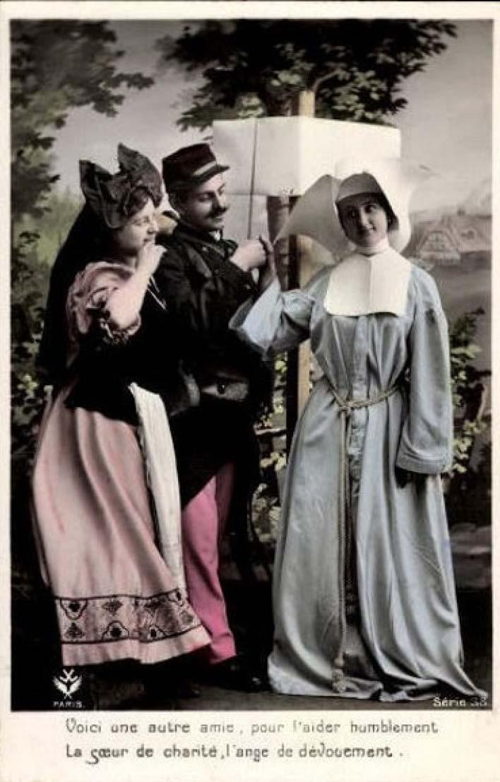 Very long habit; rhyming couplet: Here is another friend, to help you humble, the Sister of charity, the angel of devotion.