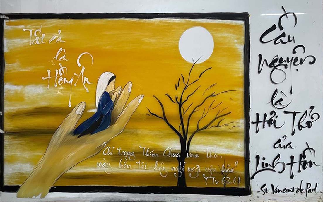 Text: "All is grace," by Sr. Maria Nguyen Thuy Uyen Nhi; "Prayer is the breath of soul" (St. Vincent).