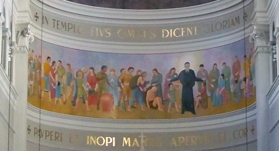 Texts: above = in his temple they all say Glory.below: He opened his hands and his heart to the poor and the needy.Internet image.