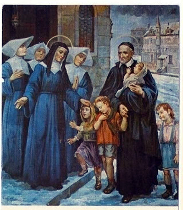 Bringing poor children to Louise de Marillac and Daughters of Charity