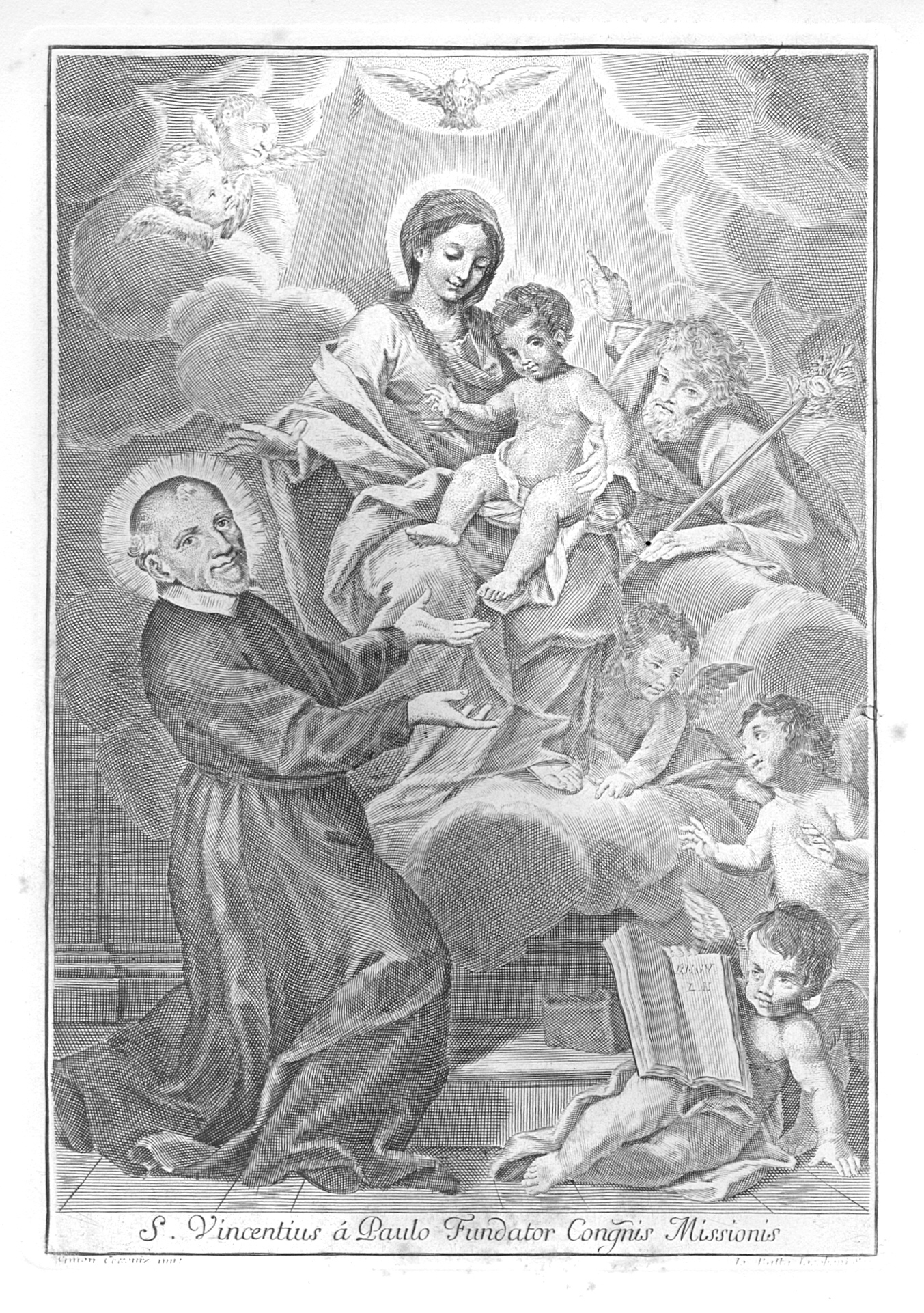 Vincent de Paul with Jesus, Mary, Joseph, angels