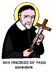 Vincent de Paul, holding crucifix; "priest" below; internet image; original Italian, location unknown