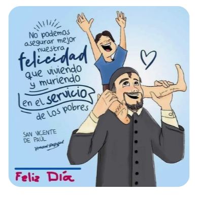 Spanish text: "We cannot guarantee a better happiness for ourselves than living and dying in the service of the poor. Have a happy day."