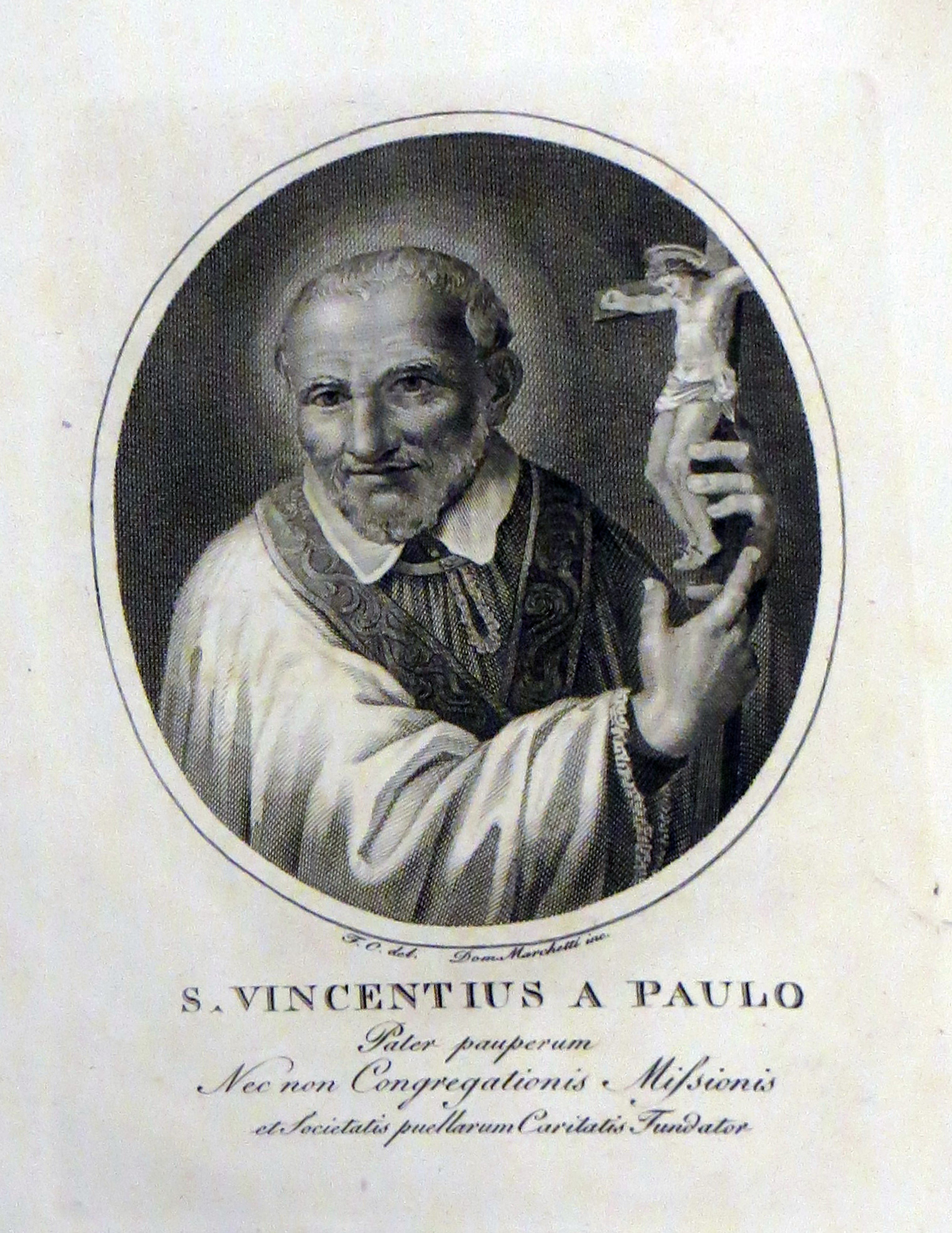 Undated engraving. Text: SVdP, Father of the Poor and founder of the CM and of the Company of the Daughters of CharityOriginal in Collegio Leoniano, Rome