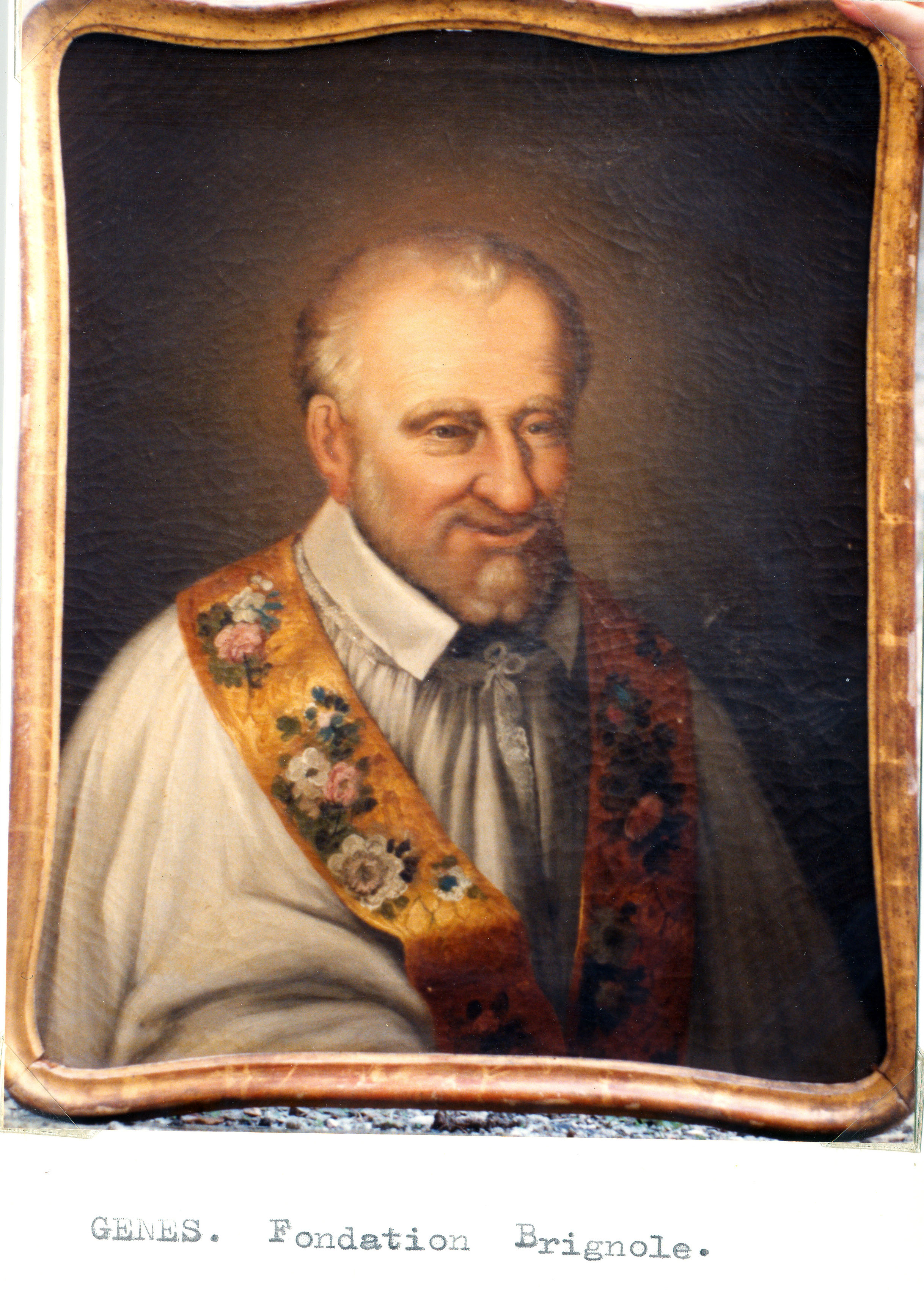 Vincent de Paul, cassock, surplice, flowery gold stole; original in Vincentian house in Genoa, Foundation Brignole-Sale; photograph 082, Gunth collection, Paris