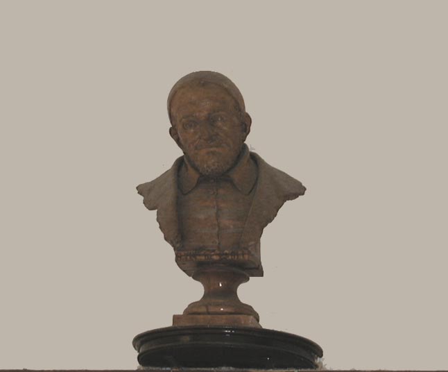 Marble bust on base; Vincent de Paul bust; original in Vincentian house, Lecce