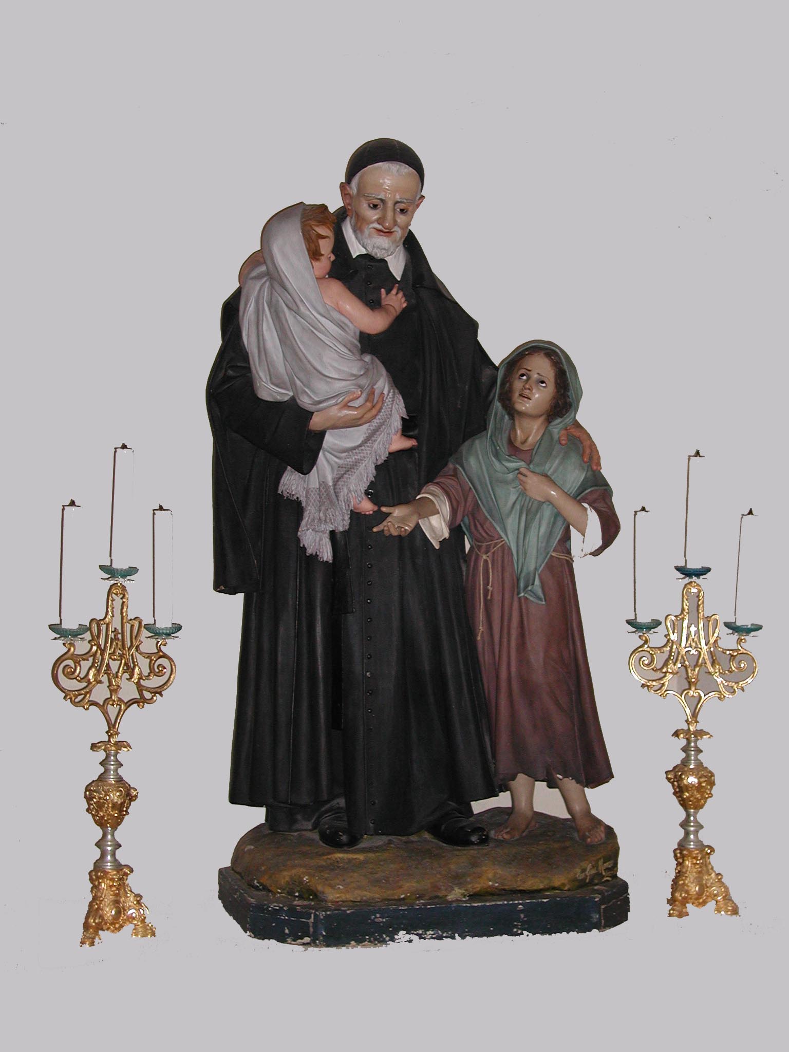 Cartapesta statue, with candleabra; original in Vincentian church, Lecce