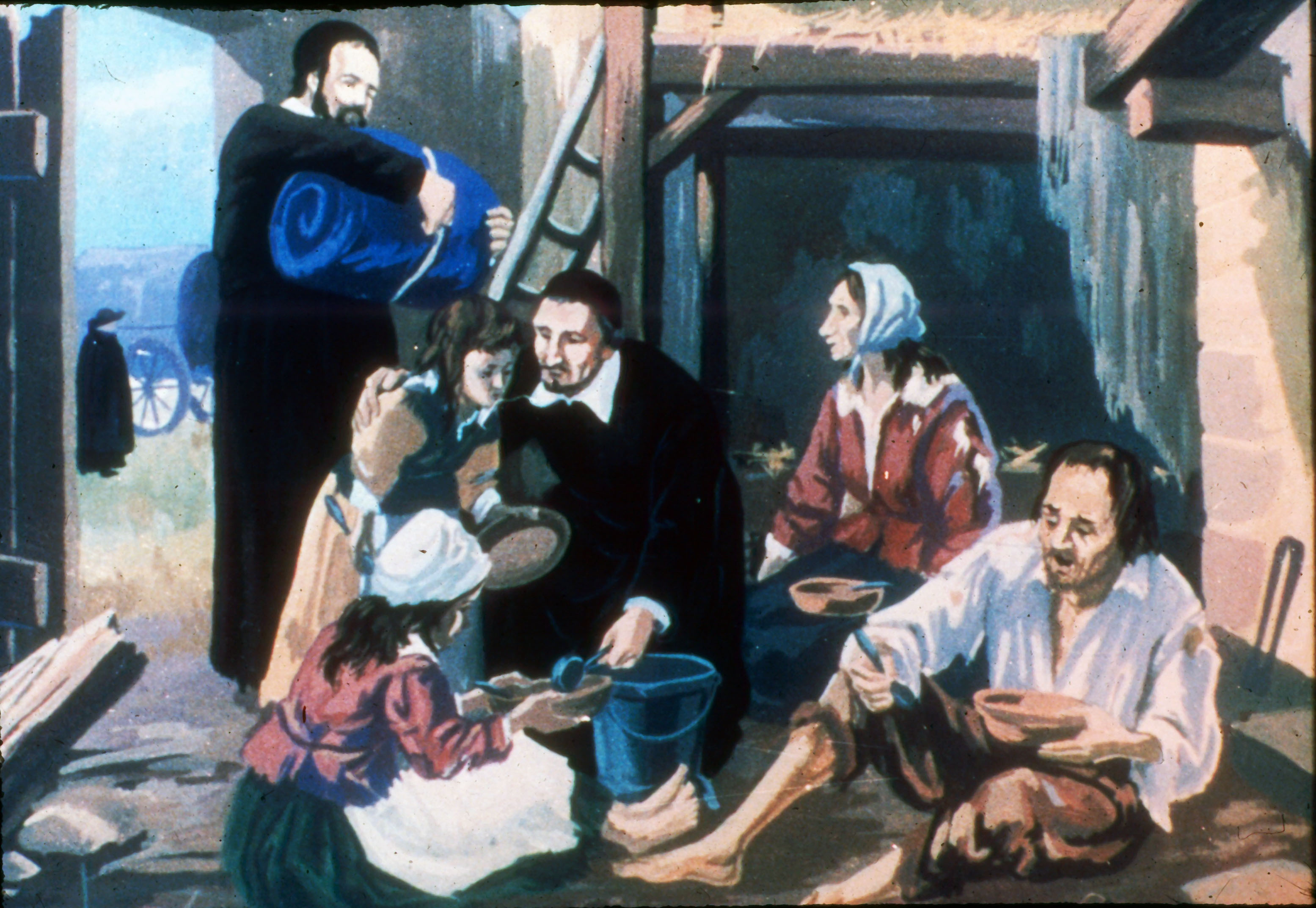 Vincent and priests visiting poor family