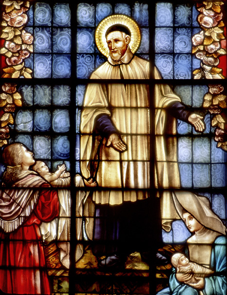 Vincent de Paul, with orphans, mother, Daughter of Charity