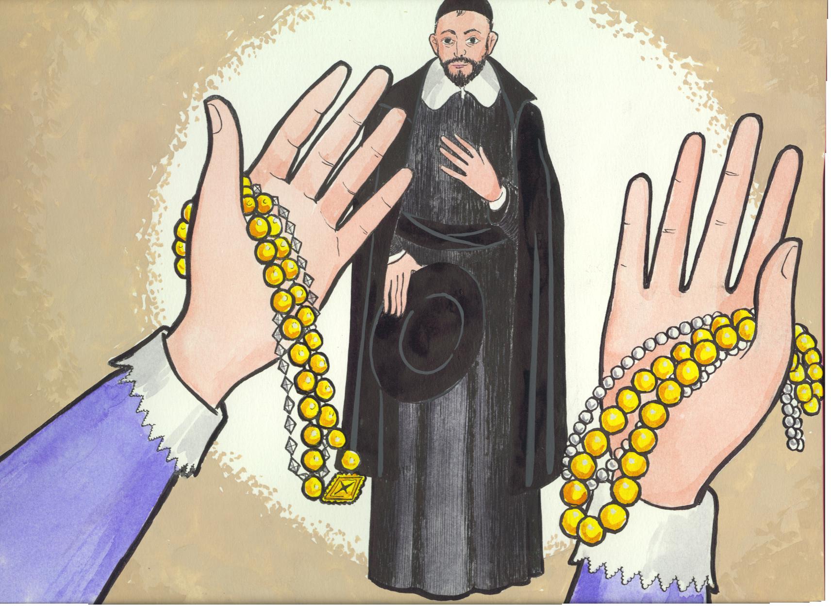 Anne of Austria offers jewels to Vincent de Paul for poor