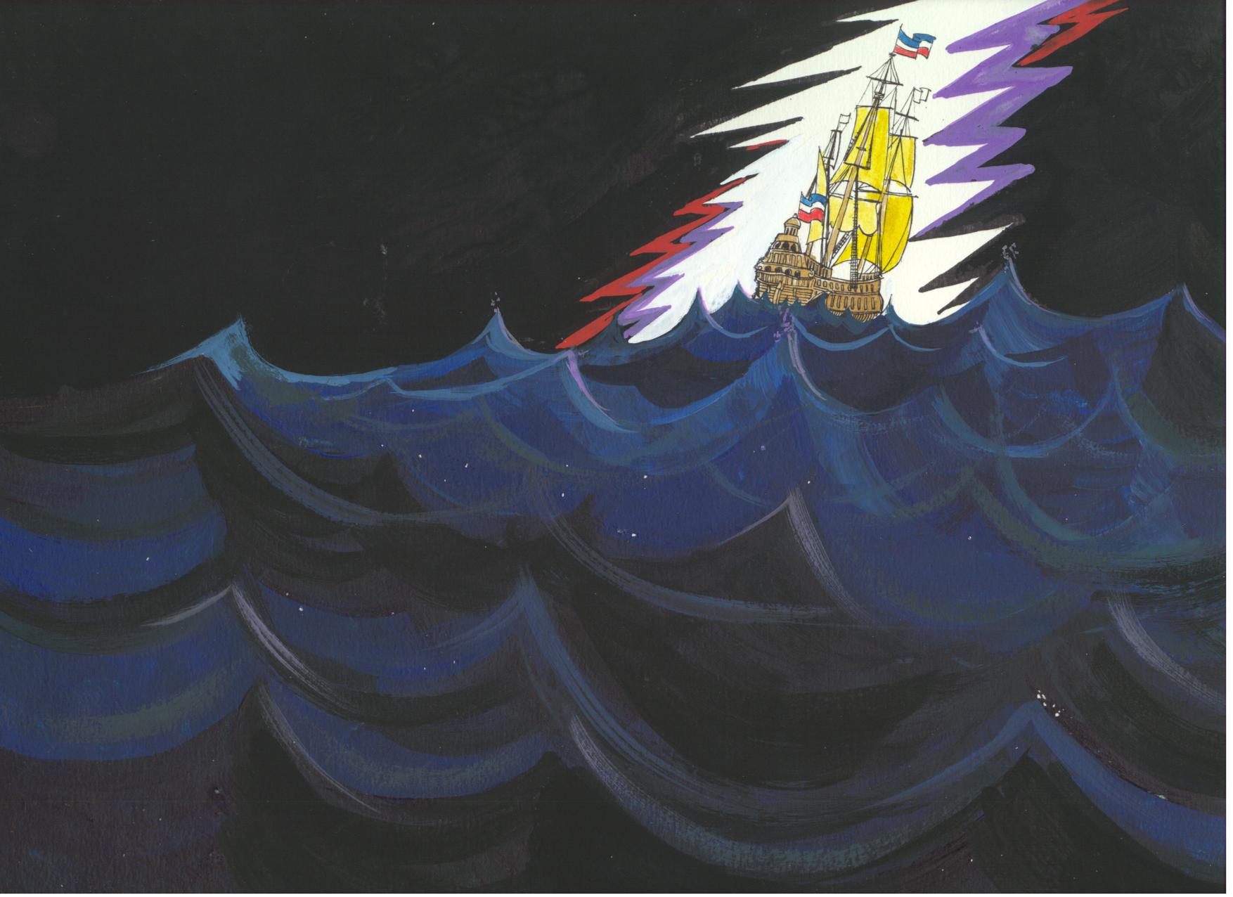 Ship in storm on way to missions