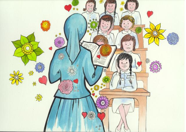 Daughter of Charity teaching girls