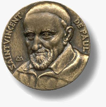 Round medallion, bronze, bust of Vincent de Paul, cassock, mantle, skullcap; internet image; may be copyrighted; origin in Netherlands