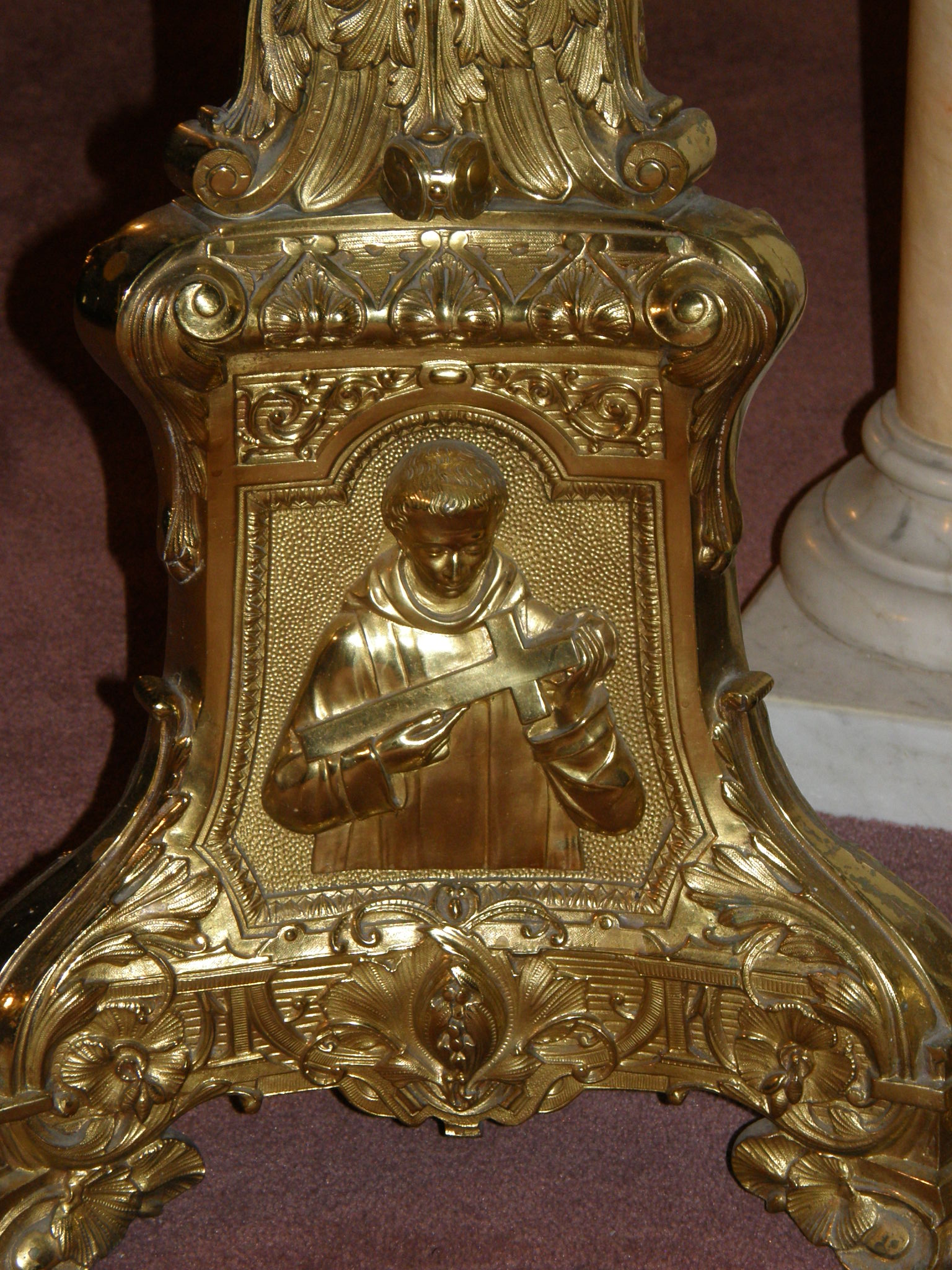Base of candlestick, saint carrying a cross, Perboyre (?)
