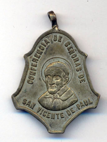 Bell-shaped medal with loop; Spanish text: Conference of the Ladies of St. Vincent de Paul; Latin American, not identified; internet image; laying of cornerstone of orphanage, Havana (?)