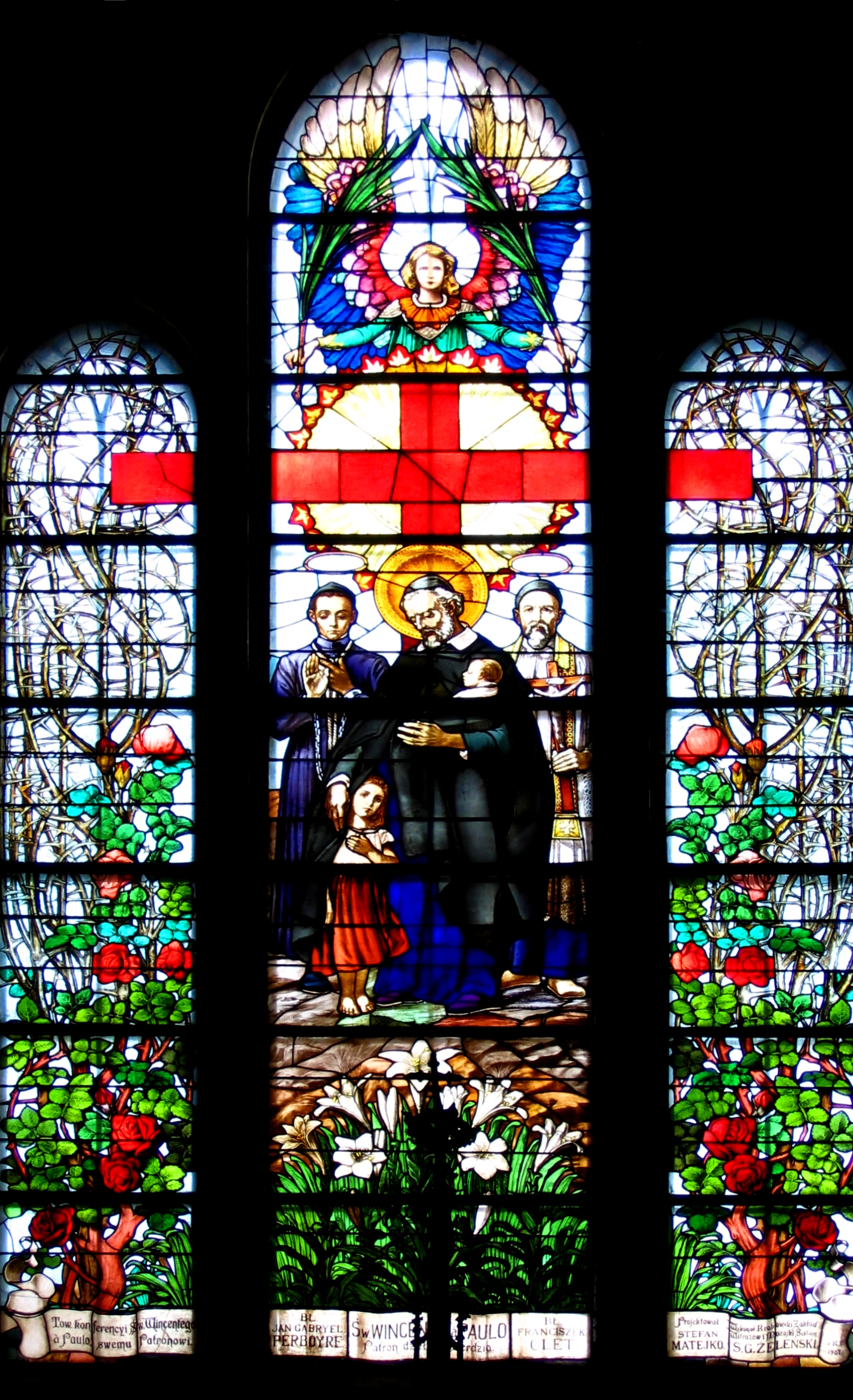 Vincent de Paul with two Vincentian martyrs, young girl