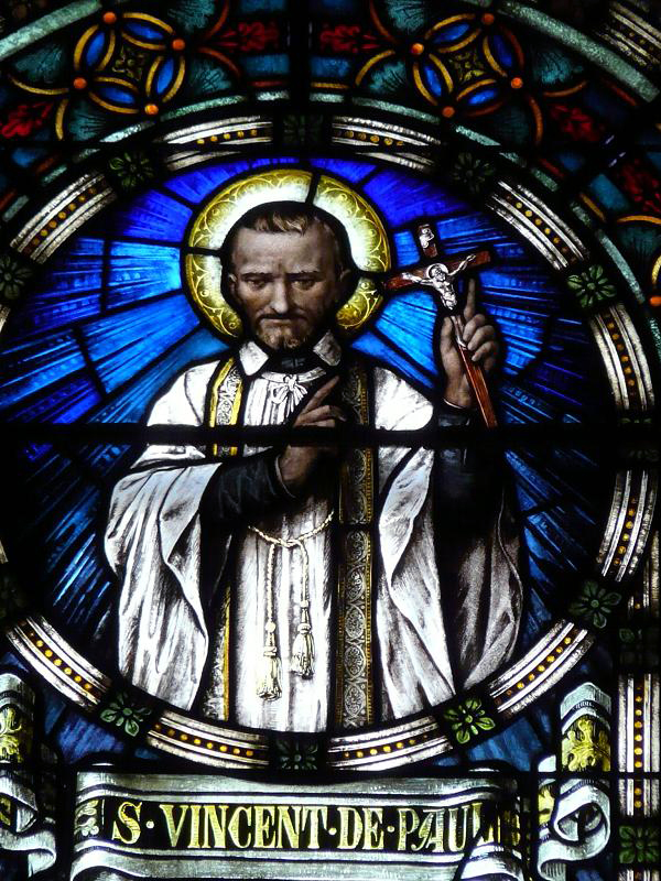 Vincent de Paul gestures toward crucifix
