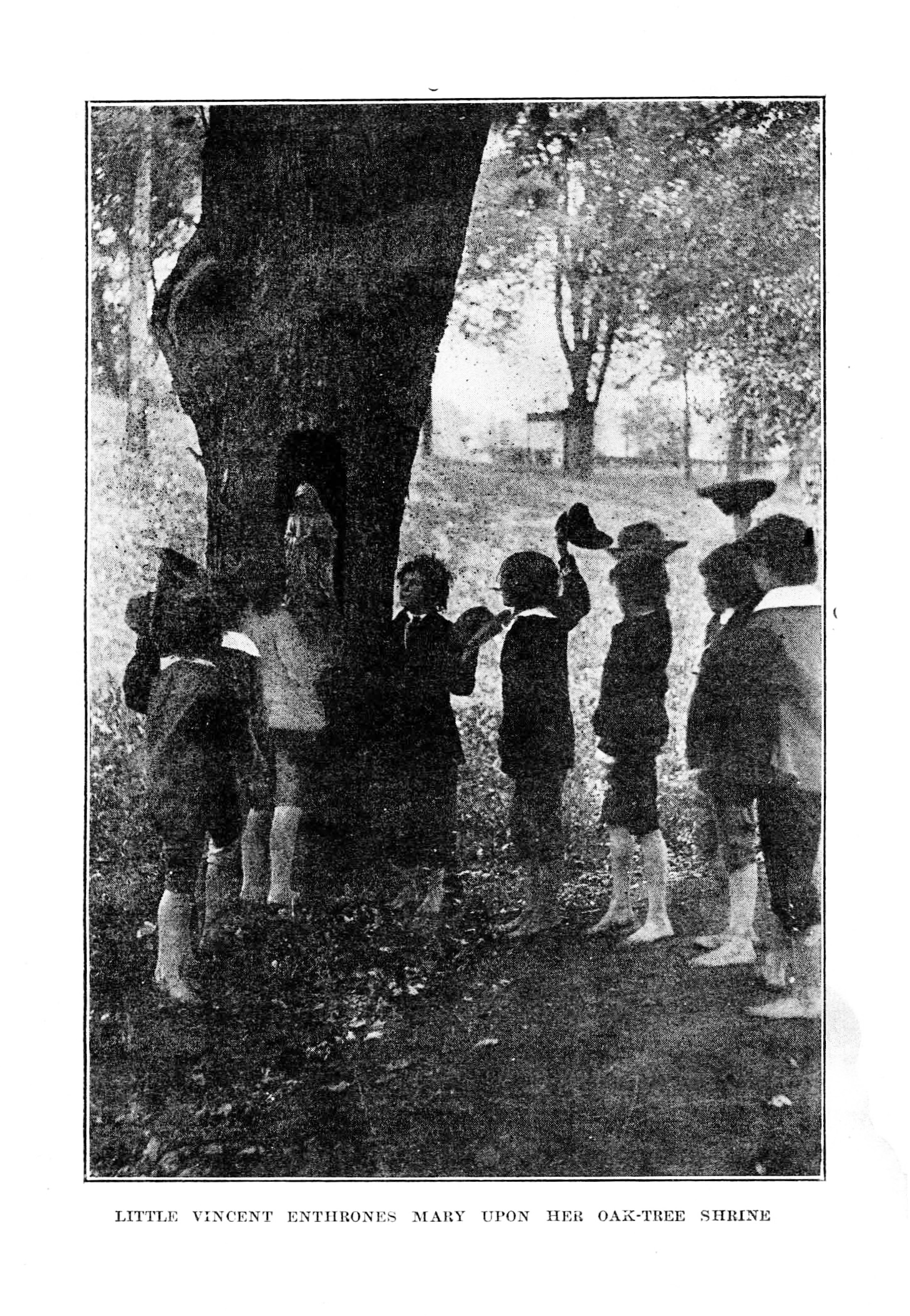 Statue of Mary in oak tree at Berceau