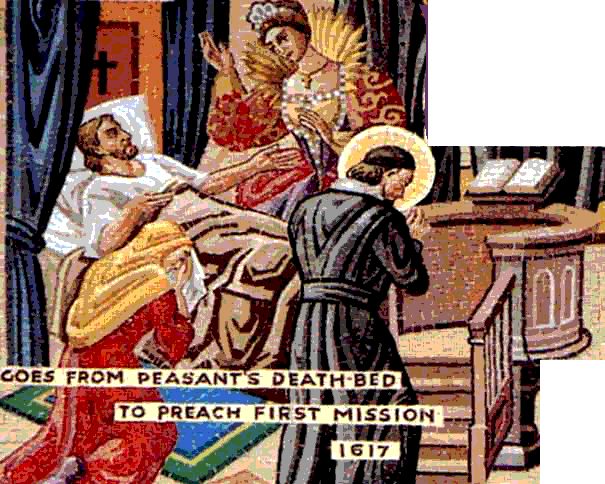 Vincent de Paul, Mme. de Gondi, dying peasant; original in former Vincentian seminary, Northampton, PA