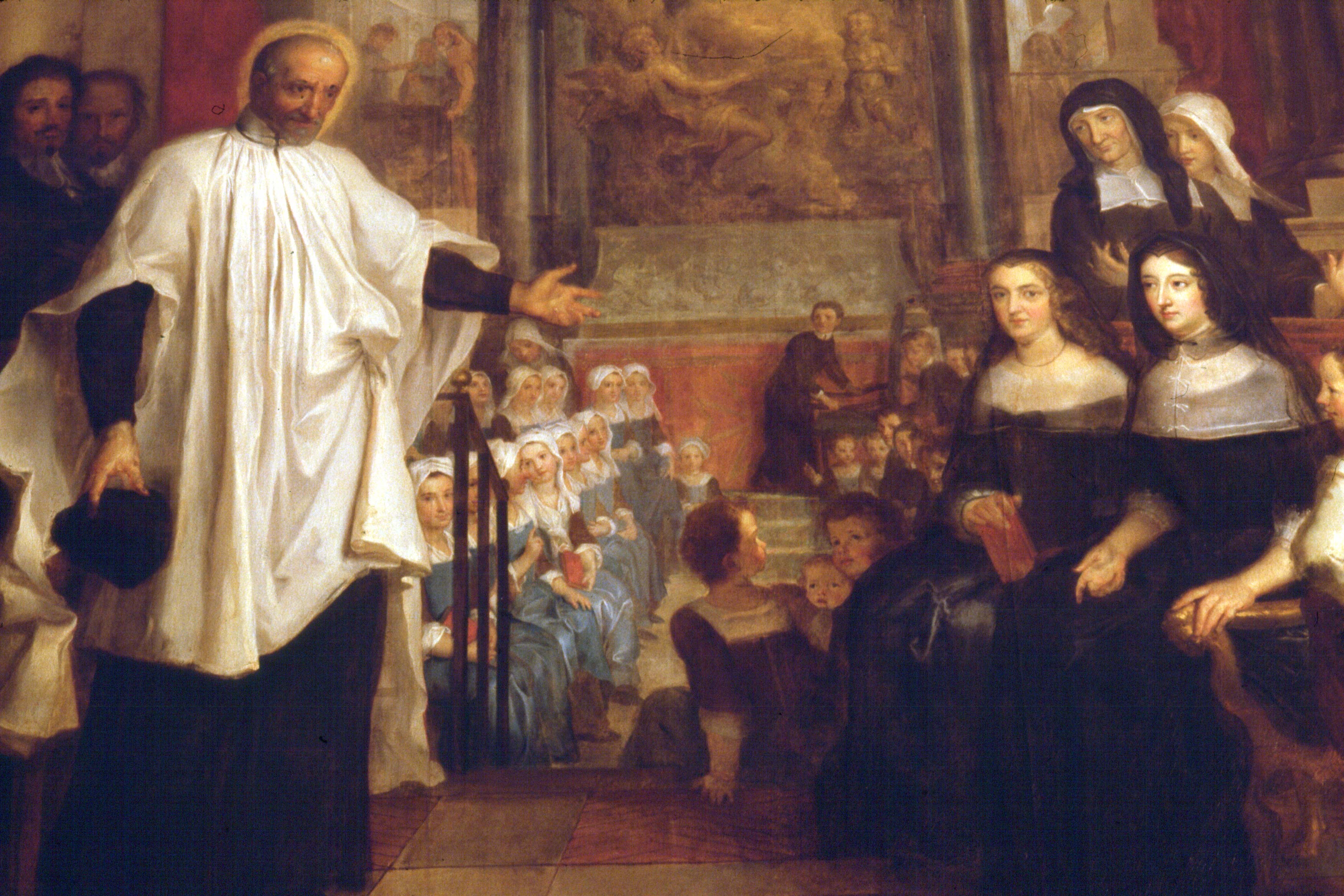 Detail from Galloche painting of Vincent de Paul and Ladies of Charity; original in Ste. Marguerite