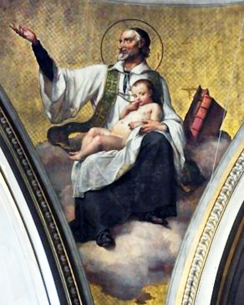 VdP, with infant, books